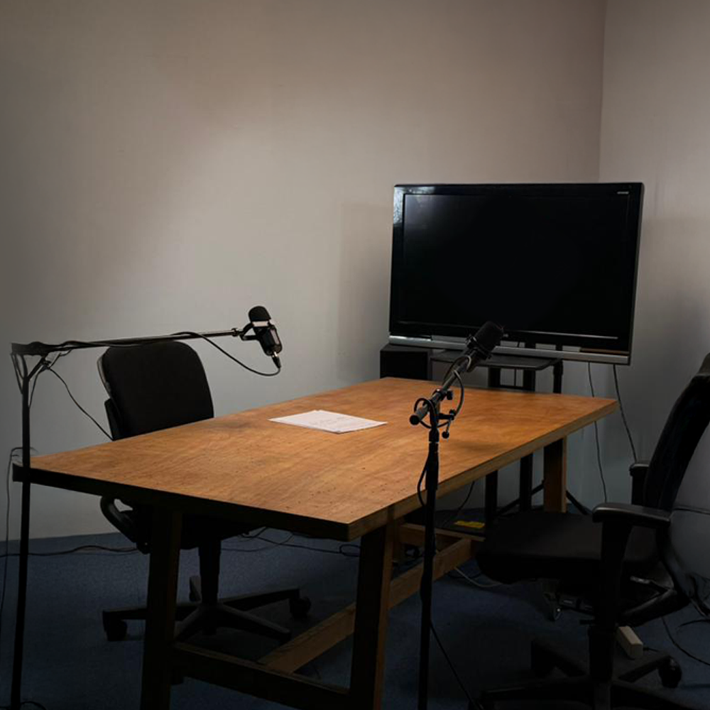 De audio podcast studio van Videolab Alkmaar is een rustige, professioneel ingerichte ruimte voor hoogwaardige spraak- en podcastopnames. Ideaal voor gesprekken, interviews, voice-overs en audioformats waarbij geluidskwaliteit centraal staat.